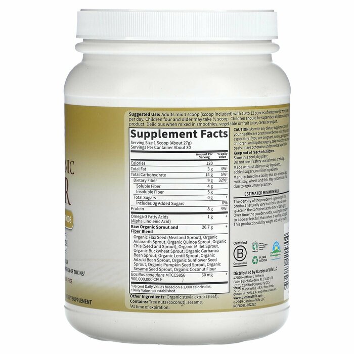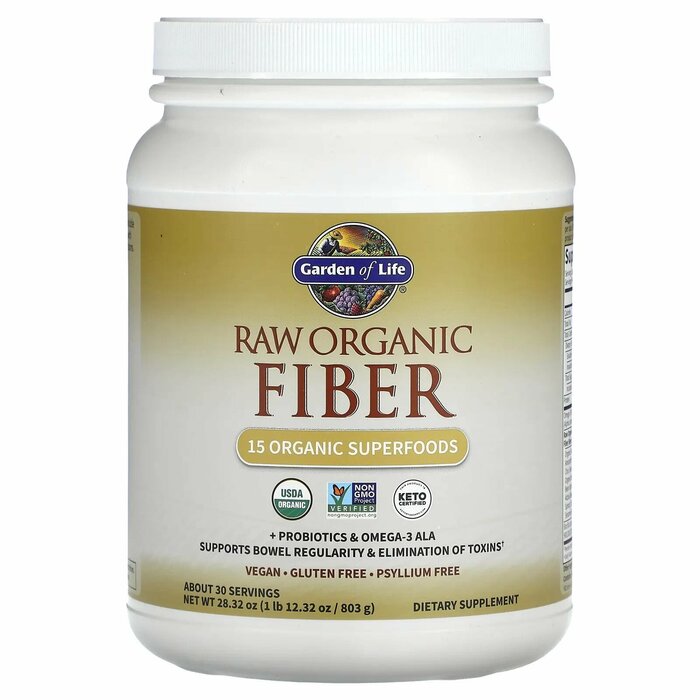 Необработанная органическая клетчатка содержит успокаивающую и питательную смесь растворимой и нерастворимой клетчатки из органических проросших семян, зерен и бобовых, без жестких волокон, например подорожника, которые могут вызывать болезненные ощущения в чувствительной толстой кишке.