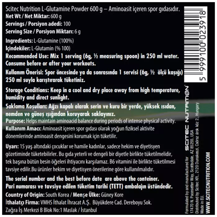 Глютамин Scitec Nutrition L-Glutamine 600 гр. — это высококачественная аминокислота, которая играет важную роль в восстановлении и поддержании мышечной массы. Продукт представлен в виде порошка, что позволяет легко добавлять его в напитки или пищу.