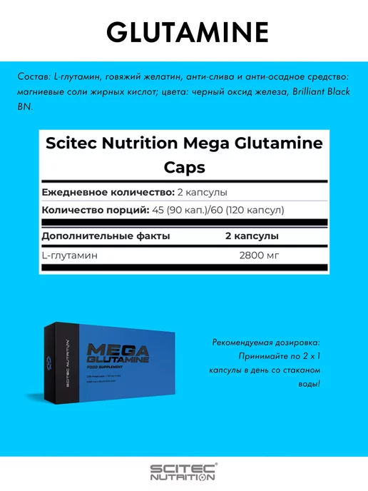 Глютамин Scitec Nutrition Mega Glutamine — это высококачественная добавка, предназначенная для поддержки восстановления мышц и улучшения общего состояния организма. В каждой упаковке содержится 120 капсул, что обеспечивает длительный курс приема.