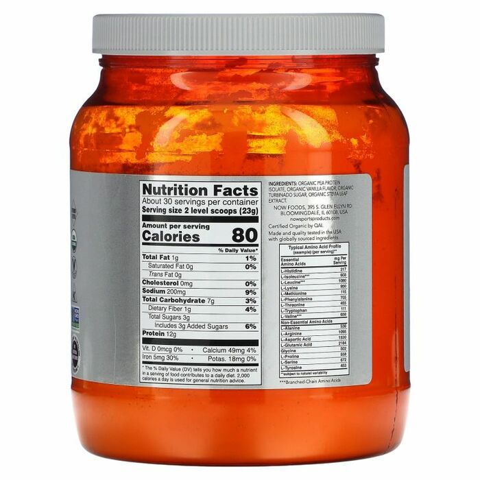 Горох хорошо известен тем, что он является источником биодоступного белка. Кроме того, горох не входит в список основных пищевых аллергенов. В совокупности это делает гороховый протеин идеальным питательным веществом для приема после тренировки для спортсменов, которые могут испытывать трудности с использованием других видов протеина. Гороховый протеин из спортивной серии NOW — это не содержащий ГМО белковый изолят растительного происхождения, содержащий 24 г легко усваиваемого белка. В каждой порции обычно содержится более 4200 мг аминокислот с разветвленной цепью и более 2000 мг L-аргинина. Гороховый протеин из спортивной серии NOW — чистый и натуральный продукт без вкусовых добавок, который легко смешивать с вашими любимыми напитками.