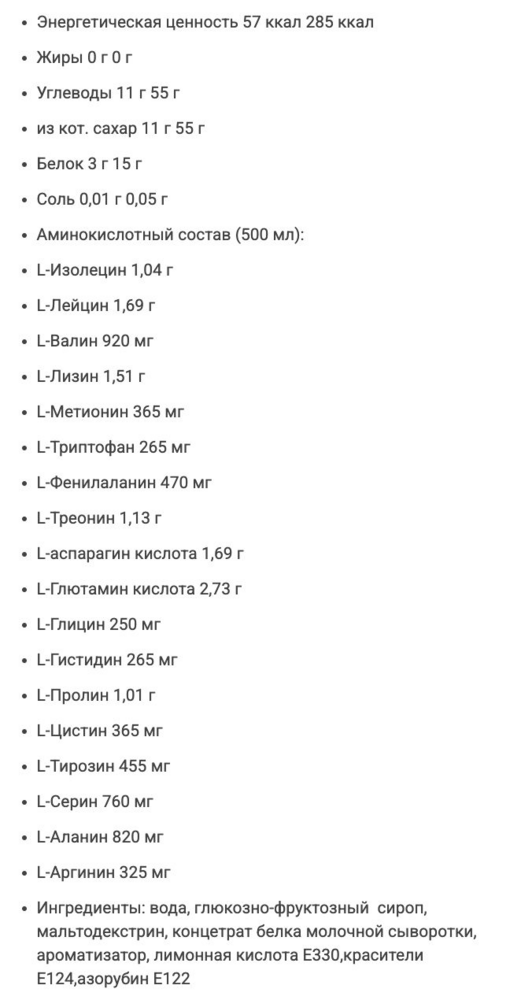 • Быстрое восстановление: Напиток содержит аминокислоты, которые помогают восстановить мышцы после интенсивных тренировок.