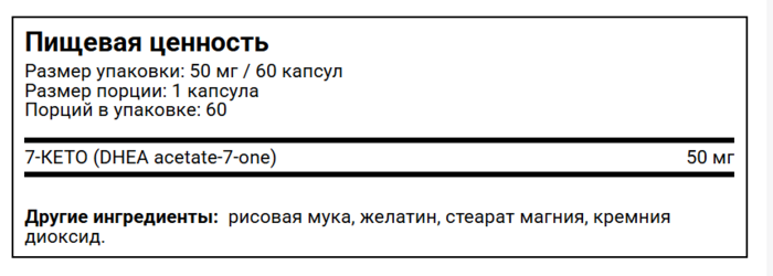 Капсулы 7-Keto DHEA легко проглатываются и не содержат искусственных добавок, что делает их удобными для ежедневного использования. Рекомендуется для людей, стремящихся поддерживать активный образ жизни и улучшать свои физические показатели.