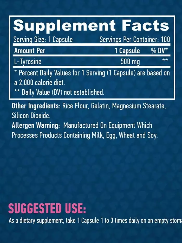 L-Tyrosine 500mg от Haya Labs — это высококачественная добавка, содержащая аминокислоту тирозин, которая играет важную роль в производстве нейротрансмиттеров и поддержании нормального функционирования организма. В каждой упаковке содержится 100 капсул, что обеспечивает длительный курс приема.