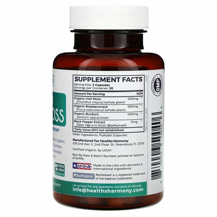 Улучшите самочувствие с помощью наших капсул из органического морского мха, в состав которых входит ирландский мох, лопух, ламинария и черный перец для лучшего усвоения.