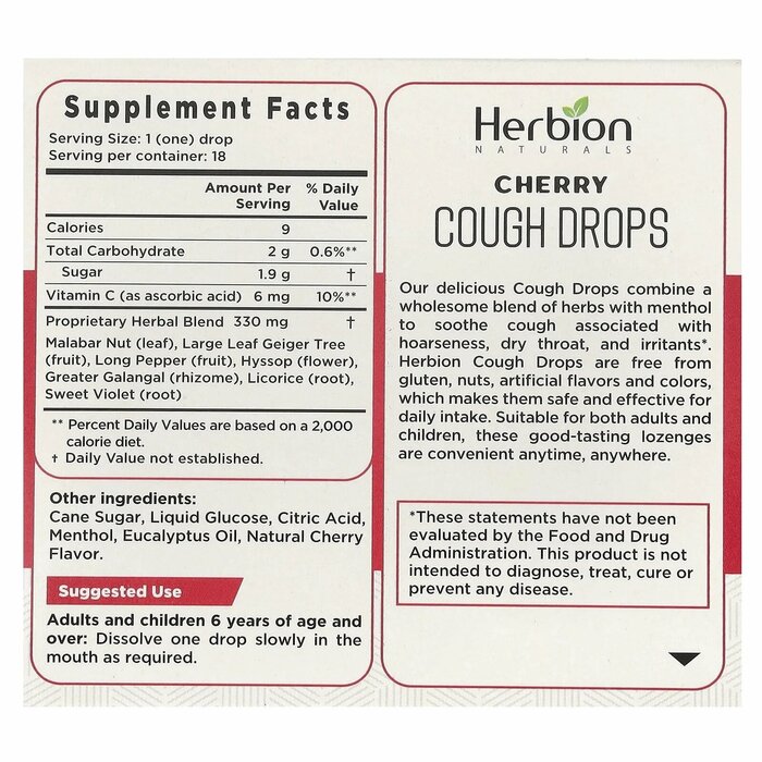 Наши восхитительные капли от кашля содержат полезную смесь трав с ментолом для облегчения кашля, связанного с охриплостью голоса, сухостью в горле и раздражителями. Капли от кашля Herbion не содержат глютена, орехов, искусственных ароматизаторов и красителей, что делает их безопасными и эффективными для ежедневного приема. Эти леденцы с приятным вкусом подходят как для взрослых, так и для детей. Их можно употреблять в любое время и в любом месте.