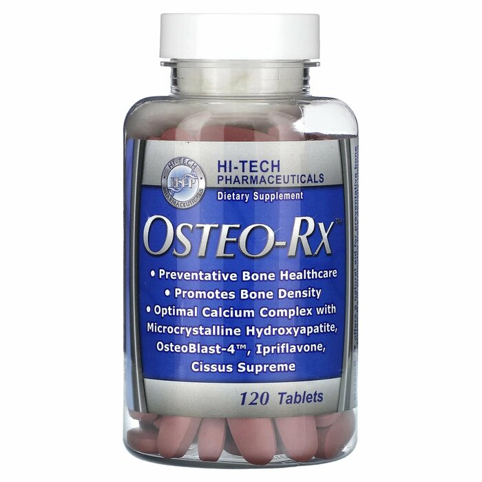 Osteo-Rx™ — натуральное средство для профилактики заболеваний костей. Osteo-Rx™ повышает плотность костей благодаря комплексной формуле, в состав которой входит комплекс кальция Optimal от Hi-Tech с микрокристаллическим гидроксиапатитом, OsteoBlast-4™, иприфлавон и циссус высочайший.