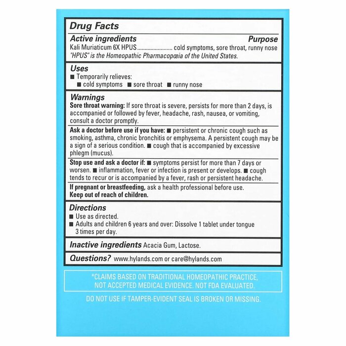Кали муриатикум 6X HPUS | симптомы простуды, боль в горле, насморк |