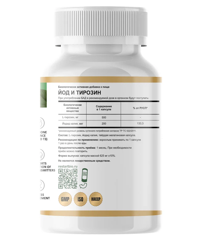 Йод и аминокислота тирозин — ключевые компоненты для выработки тиреоидных гормонов, которые регулируют обмен веществ, энергию и настроение.