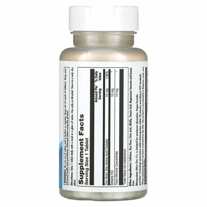 Описание. KAL® Zinc 15+ имеет хелатную форму для максимального усвоения. Растительный продукт. Технология ActivTab™ гарантирует распад таблеток в течение 30 минут в соответствии со стандартами USP.