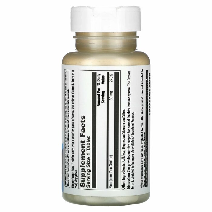 Цинк обеспечивает питательную поддержку для здоровой функции иммунной системы. Хелатная форма — оротат цинка обладает более высокой биодоступностью.
