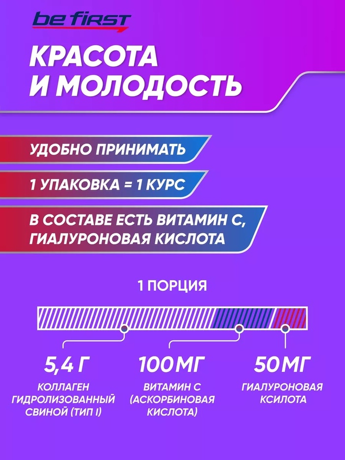 Коллаген Be First First Collagen с гиалуроновой кислотой и витамином C экзотик — это идеальное решение для поддержания здоровья кожи, суставов и волос. В каждой упаковке содержится 200 граммов высококачественного коллагена, который обеспечивает ваш организм необходимыми компонентами для поддержания молодости и красоты.