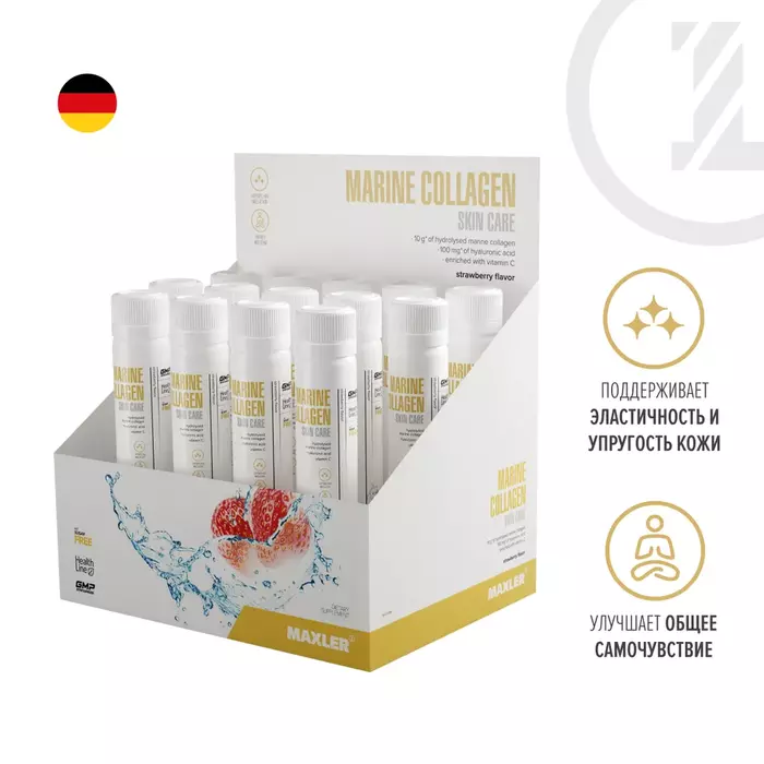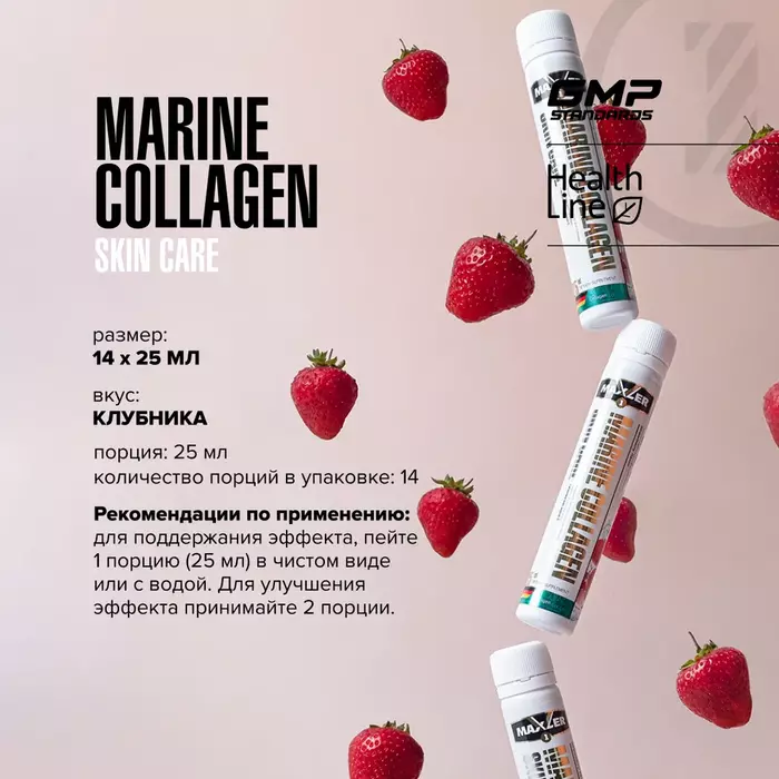 Maxler Коллаген Marine SkinCare Клубника, 25 мл, 14 ампул в упаковке