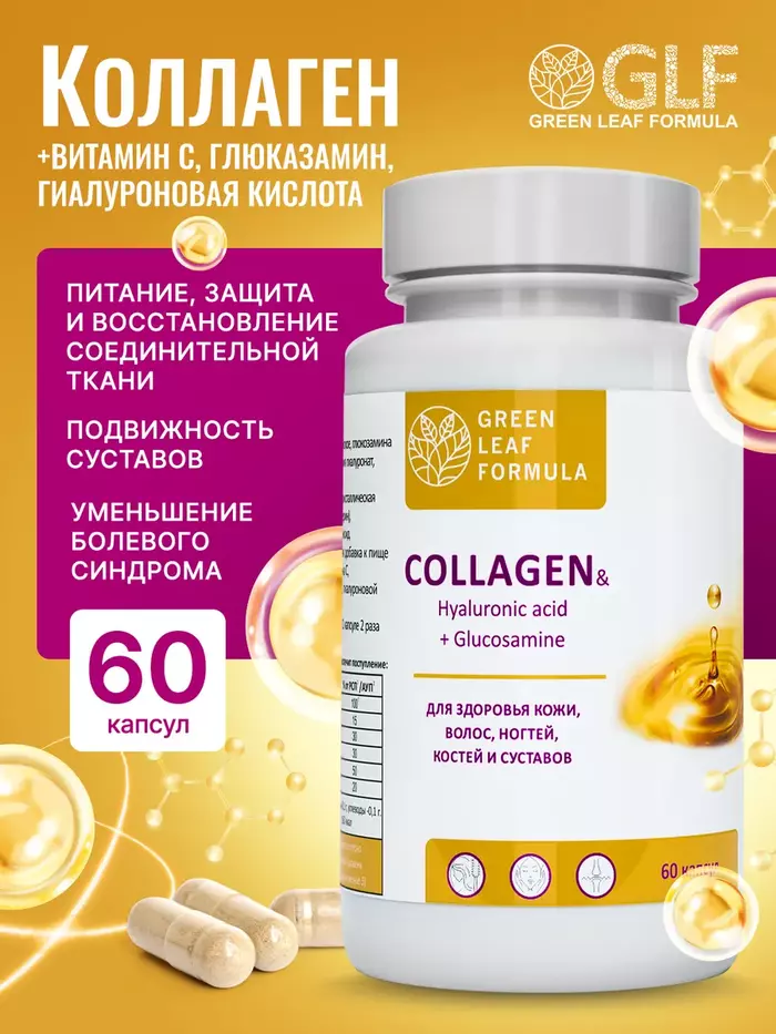 Коллаген с гиалуроновой кислотой и витамином С, 60 капсул от GREEN LEAF FORMULA купить с доставкой по Москве и всей России в интернет-магазинах на Beautery можно с максимальной выгодой.