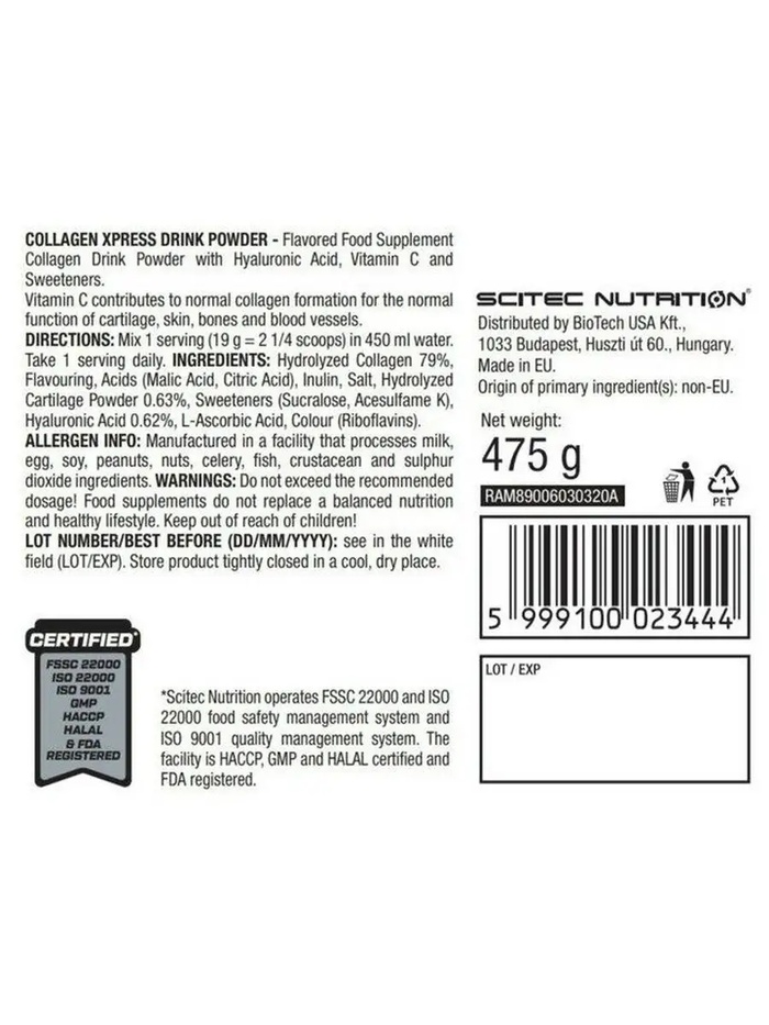 Scitec Nutrition Collagen Xpress представлен в виде порошка, что позволяет легко контролировать дозировку и смешивать с любимыми напитками. Продукт подходит для людей, стремящихся поддерживать активный образ жизни и заботящихся о своем здоровье.