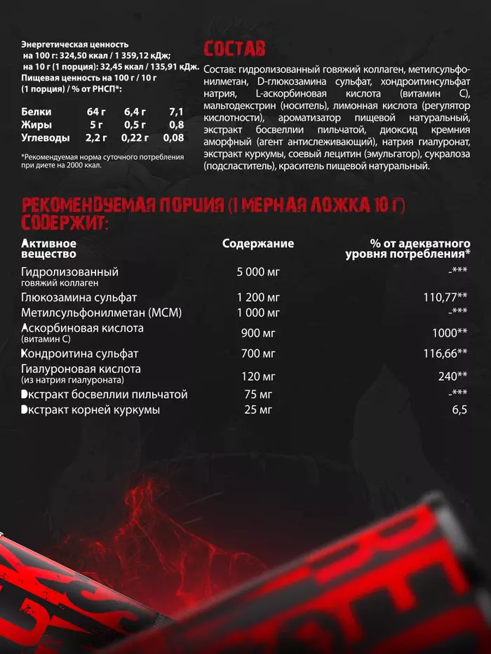 Monster Flex от Reckful имеет приятный малиновый вкус, что делает его употребление приятным. Продукт подходит для людей, ведущих активный образ жизни, а также для тех, кто испытывает нагрузки на суставы и связки.