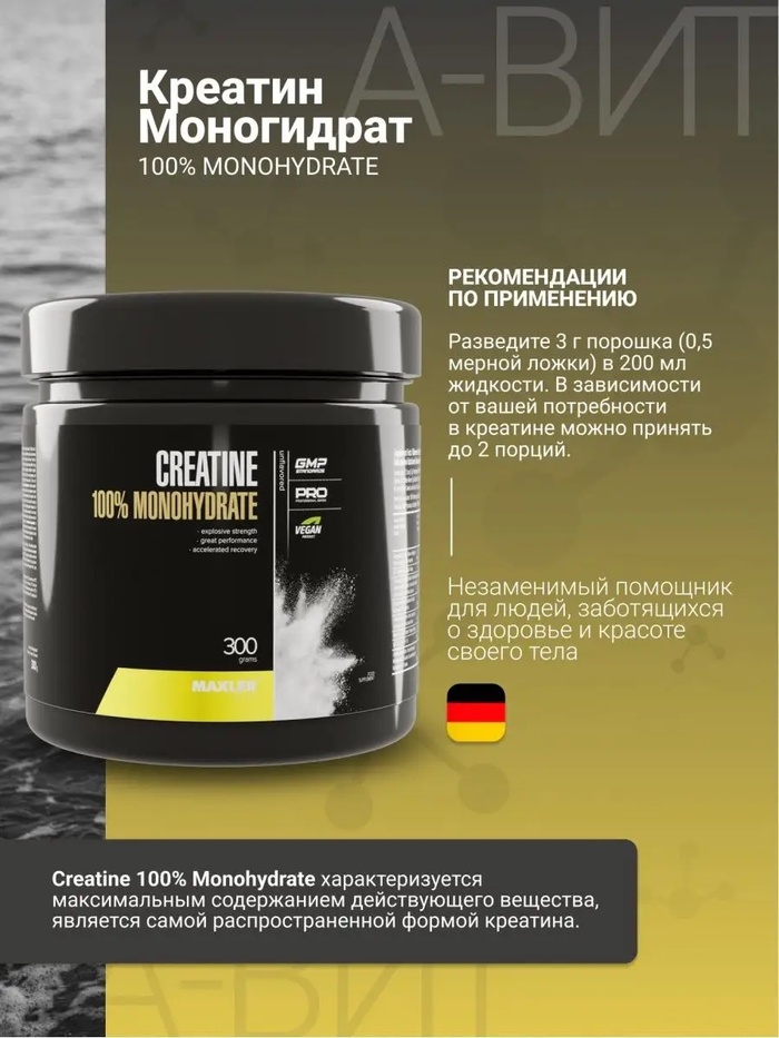 Креатин Maxler 100% Creatine Monohydrate подходит для всех видов спорта и может использоваться как в период набора массы, так и во время сушки. Он не содержит добавок и примесей, что делает его безопасным для здоровья.