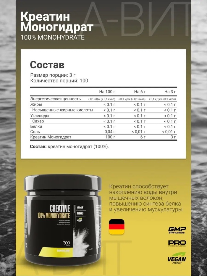 Креатин Maxler 100% Creatine Monohydrate — это высококачественная добавка, предназначенная для спортсменов и активных людей, стремящихся улучшить свои физические показатели. В каждой упаковке содержится 300 граммов чистого креатина моногидрата, который способствует увеличению силы и выносливости.