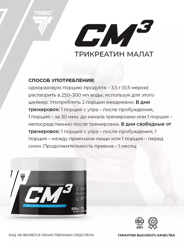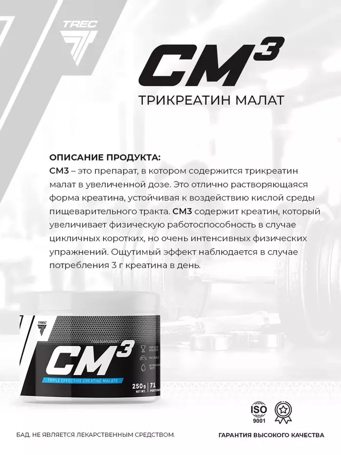 Креатин Trec Nutrition CM3 1250 легко растворяется в воде и быстро усваивается организмом. Он подходит как для профессиональных спортсменов, так и для любителей, стремящихся улучшить свои результаты в тренировках.