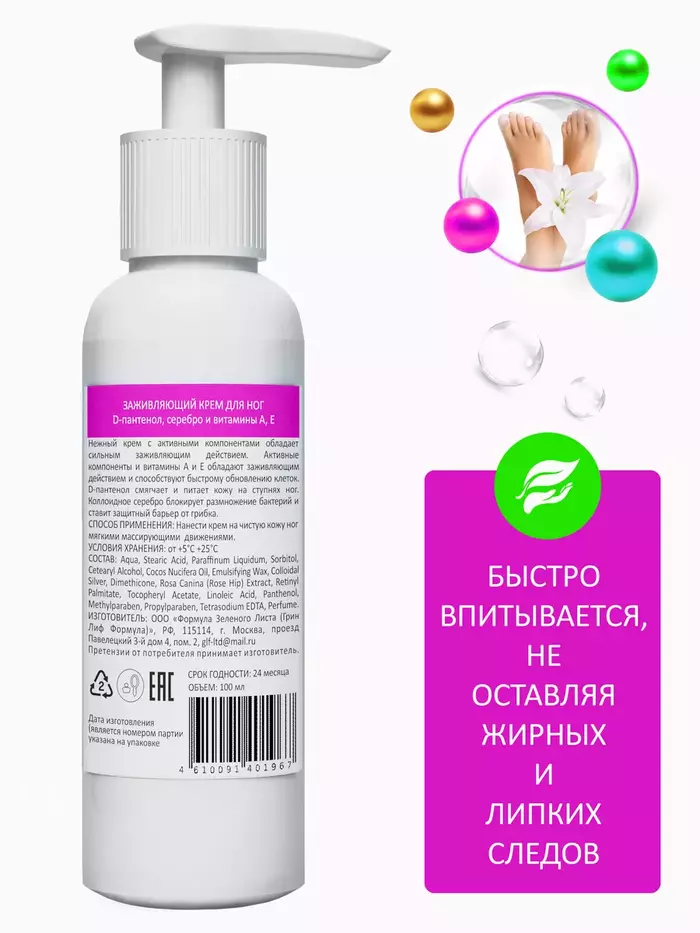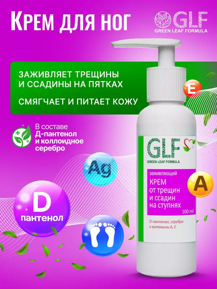 GREEN LEAF FORMULA Крем для ног с дозатором, заживляющий