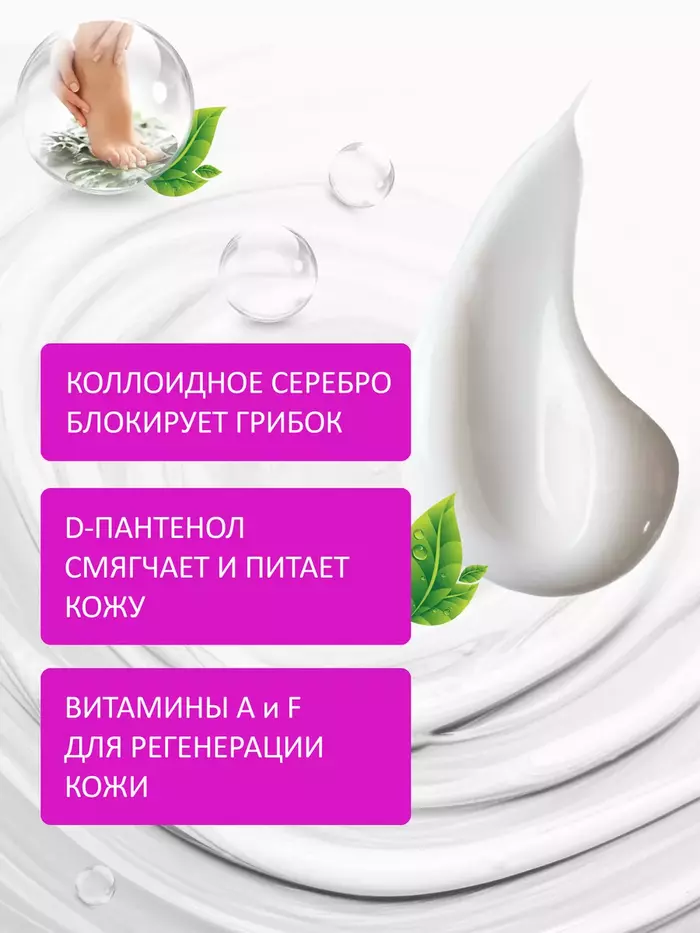 Крем для ног и стоп с Дпантенолом и коллоидным серебром смягчает и заживляет трещины на пятках и ссадины на ступнях.Мягкая и легкая текстура крема быстро впитывается и не оставляет жирный слой и липкие следы.Основные действующие компоненты крема Dпантенол и коллоидное серебро, а также витамины А и Е, способствуют активному заживлению и регенерации клеток.Dпантенол способствует смягчению и питанию кожи, снимает воспаление, устраняет сухость и шелушение.Коллоидное серебро блокирует проникновение болезнетворных микроорганизмов в ранки и трещины, препятствует появлению грибка на повреждённых участках, усиливает защитные функции кожи.Серия “Лечебная косметика”.