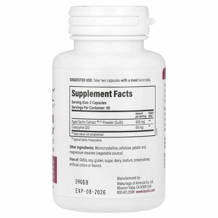 Kyolic Выдержанный чесночный экстракт с коэнзим Q10 формула 110, 100 капсул