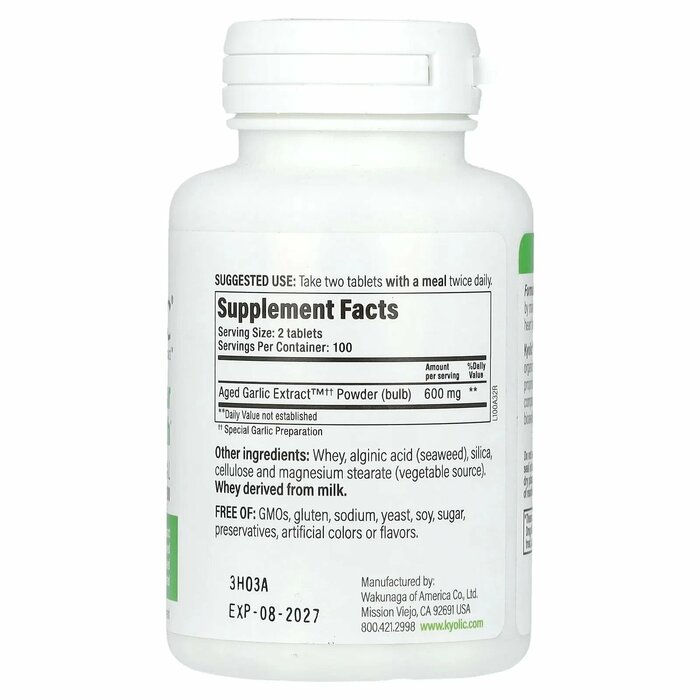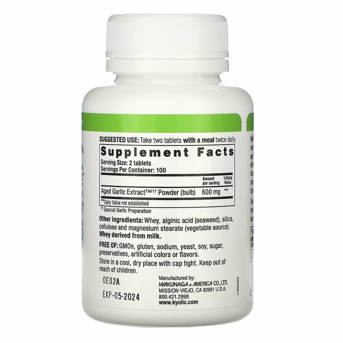Выдержанный экстракт чеснока Aged Garlic Extract™ (AGE) от Kyolic® начинается с органически выращенного чеснока. Он выдерживается с использованием запатентованного процесса для удаления вызывающих запах соединений, которые характерны для сырого чеснока, что увеличивает биодоступность полезных соединений.