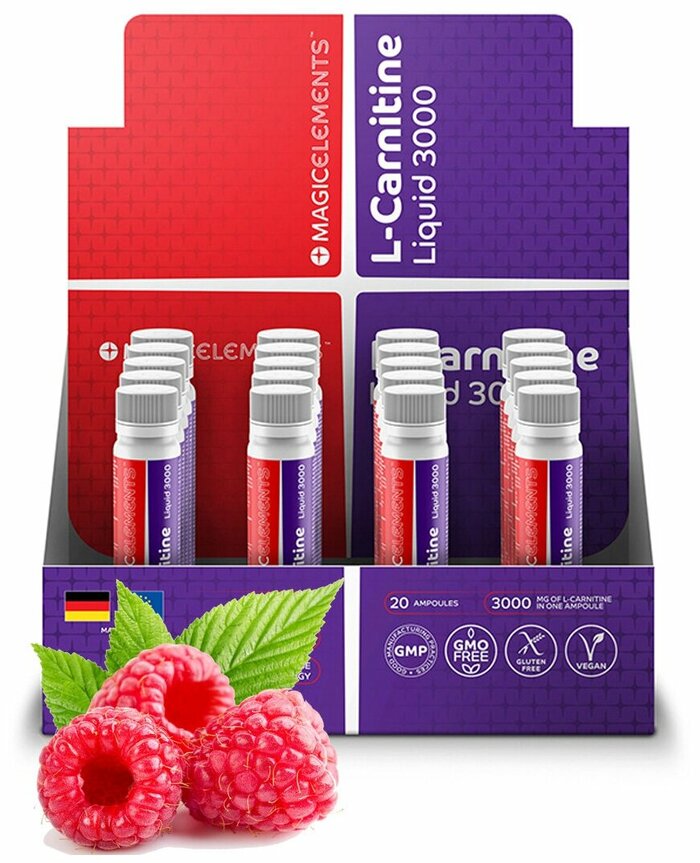 Л-Карнитин в ампулах Magic Elements L-Carnitine Liquid 3000 малина — это высококачественная добавка, предназначенная для активных людей, стремящихся поддерживать свою физическую форму. В каждой упаковке содержится 20 ампул по 25 мл, что обеспечивает удобство в использовании и точную дозировку.