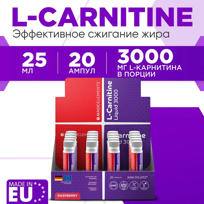 Аминокислота L-Карнитин 3000 Малина — это высококачественный продукт от бренда Magic Elements, который поможет вам достичь ваших фитнес-целей. В каждой упаковке содержится 20 ампул по 25 мл, что обеспечивает удобство использования и точную дозировку.