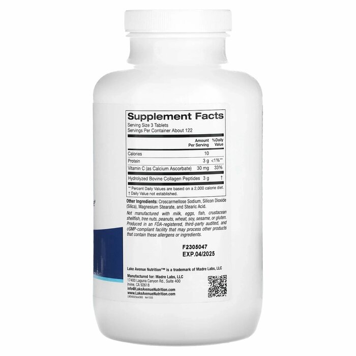 Гидролизованный коллаген типов I и III от Lake Avenue Nutrition содержит гидролизованные пептиды бычьего коллагена. Эта добавка не содержит глютена, ГМО и сои.