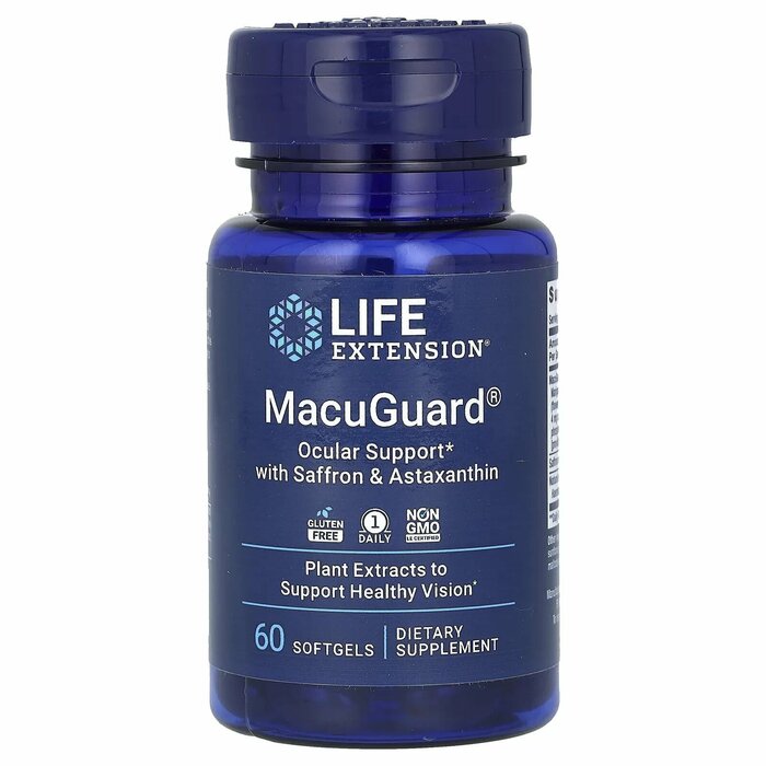 Такие питательные вещества, как лютеин и астаксантин, полезны для здоровья глаз. Добавка для поддержки зрения MacuGuard® содержит эти питательные вещества, а также зеаксантин, мезо-зеаксантин и шафран, образуя комплексную формулу для поддержания здоровья глаз.