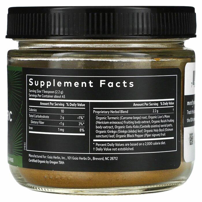 Gaia Herbs Смесь гриба Львиная грива и куркумы, 100 г