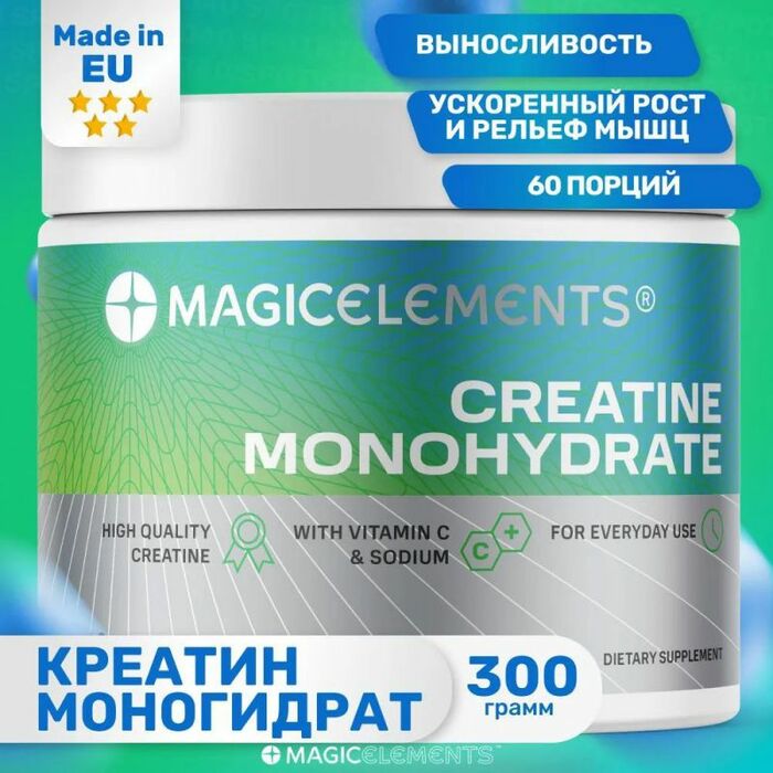 Magic Elements Creatine (300 гр) — это высококачественная креатиновая добавка, предназначенная для улучшения спортивных результатов и повышения выносливости. Каждая порция содержит чистый креатин, который способствует увеличению силы и мышечной массы.