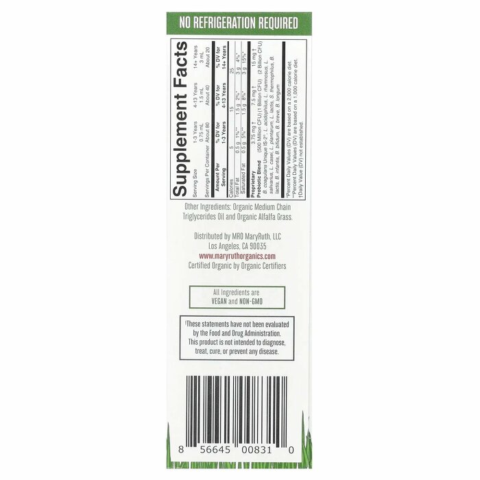 Масло из органических среднецепочечных триглицеридов и органические ростки люцерны.