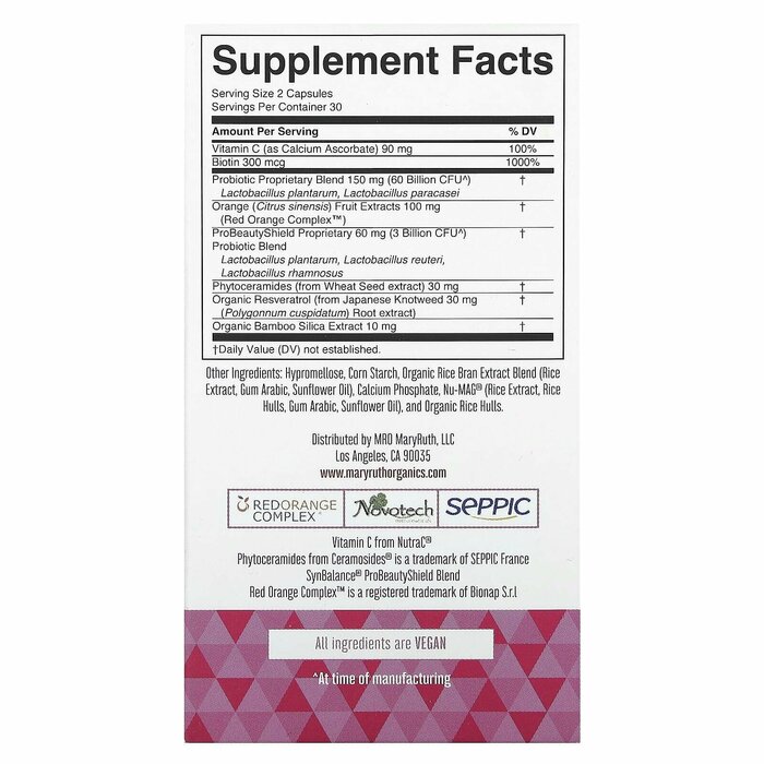 Гипромеллоза, кукурузный крахмал, смесь экстрактов органических рисовых отрубей (экстракт риса, аравийская камедь, подсолнечное масло), фосфат кальция, Nu-MAG® (экстракт риса, рисовая шелуха, аравийской камеди, подсолнечное масло), органическая рисовая шелуха.
