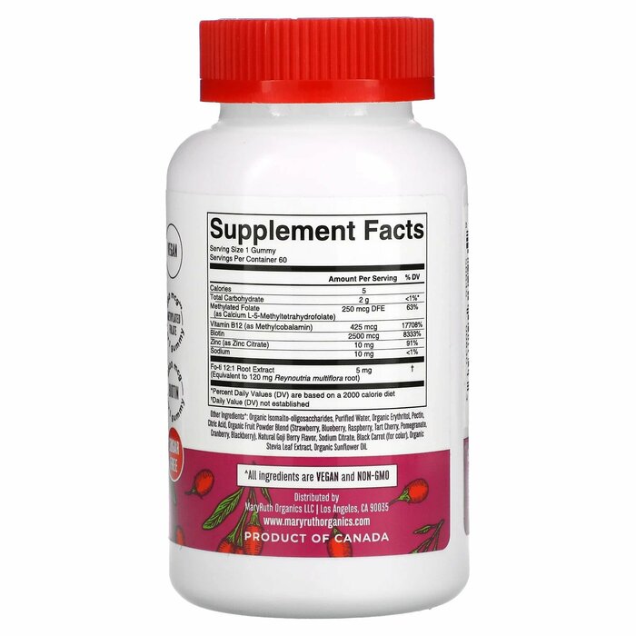 MaryRuth's Пищевая добавка с биотином Ягоды годжи, 60 жевательные мармеладки