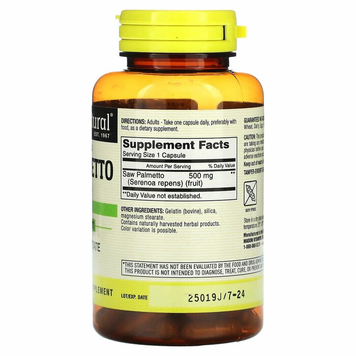 Добавки серенои популярны среди мужчин, которые заинтересованы в здоровом функционировании простаты. С возрастом мужчины иногда испытывают проблемы со здоровьем, связанные с предстательной железой. Воспаление предстательной железы может вызывать факторы питания, а также нормальное старение. По мере воспаления она увеличивается в размерах, оказывая давление на уретру. Это может привести к появлению таких симптомов, как затрудненное мочеиспускание или болезненное мочеиспускание. Пальма сереноа содержит натуральные соединения, которые могут помочь поддерживать здоровье простаты, защищая клетки простаты от ДГТ (дигидротестостерона), который может вызвать воспаление простаты, нарушая нормальное здоровье и функционирование простаты. Mason Natural Saw Palmetto - это формула из цельных трав, содержащая 500 мг плодов серенои на капсулу.
