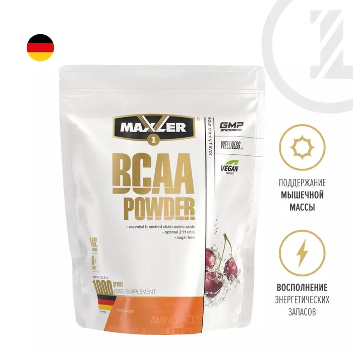 Maxler BCAA Powder 1000 гр Вкус: Вишня — это высококачественная добавка, предназначенная для поддержки мышечного восстановления и роста. В каждой упаковке содержится 1000 граммов порошка с насыщенным вишневым вкусом, который легко растворяется в воде.