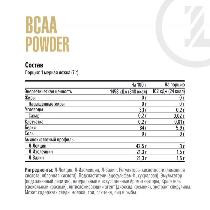 • Ускорение восстановления: BCAA (аминокислоты с разветвленной цепью) способствуют быстрому восстановлению мышц после интенсивных тренировок.