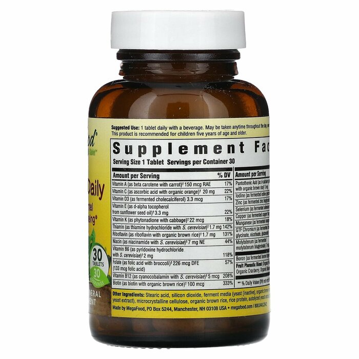 MegaFood Kids One Daily — это базовый мультивитаминный комплекс в удобных таблетках для приема один раз в день, разработанный для роста и развития детей старше 5 лет.