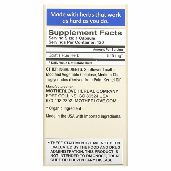 Motherlove БАД для применения в период грудного вскармливания Козья рута, 120 капсул