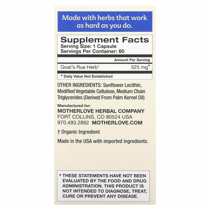 Motherlove БАД для применения в период грудного вскармливания Козья рута, 60 капсул