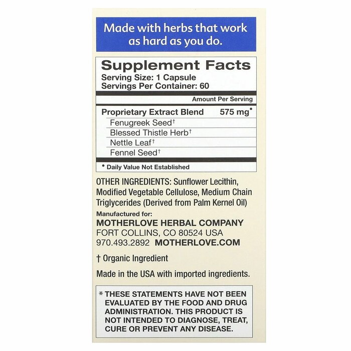 Motherlove Пищевая добавка для применения в период грудного вскармливания More Milk Plus, 60 капсул