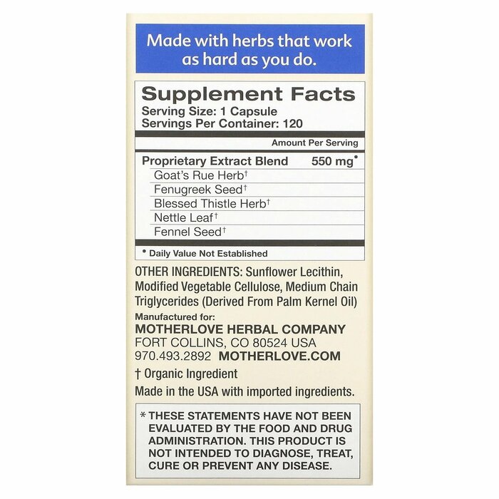 Motherlove Пищевая добавка More Milk для женщин в период грудного вскармливания, 120 капсул