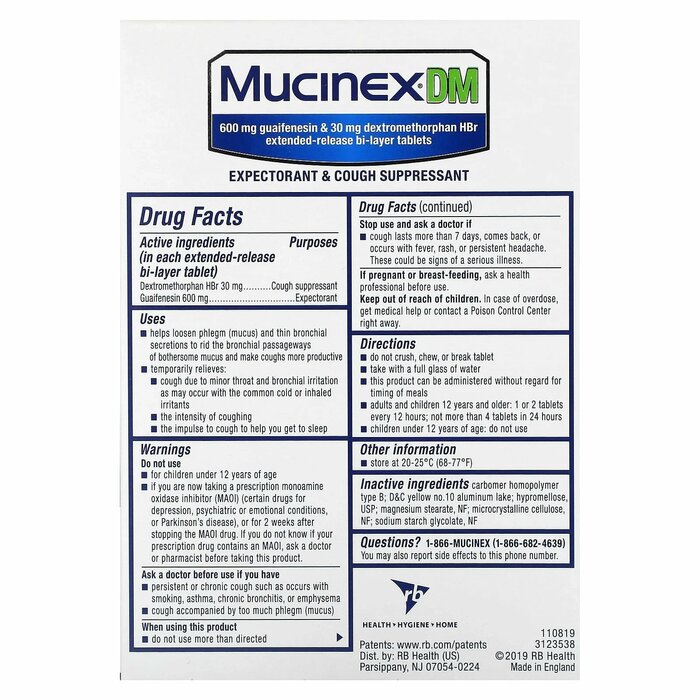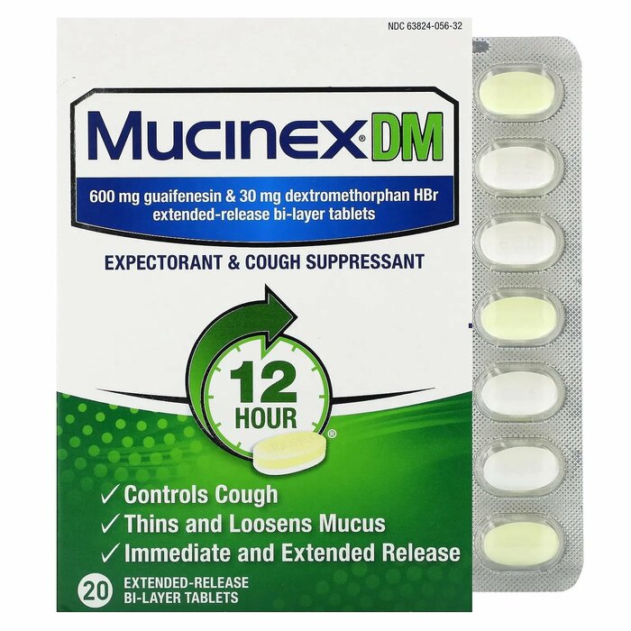 - 600 мг гвайфенезина и 30 мг декстрометорфана HBr, двухслойные таблетки с пролонгированным высвобождением
