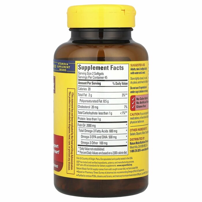 Страна происхождения рыбьего жира: Перу. Инкапсулировано и проверено на качество в США.
