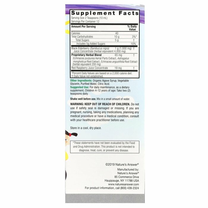 Жидкость самбукуса для детей от Nature's Answer производится из 4000 мг ягод черной бузины на порцию. Черная бузина содержит в два раза больше антиоксидантов, чем голубика, и больше антиоксидантов, чем клюква и ягоды годжи. ** Кроме того, дети получают дополнительные преимущества эхинацеи и астрагала, которые помогают поддерживать здоровье иммунной системы. Каждая ложка этой великолепной черной бузины обладает мощным эффектом, помогая ежедневной иммунной защите ваших детей.