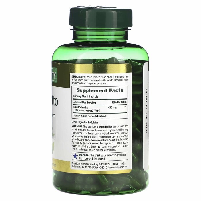 Nature's Bounty Плоды пальмы сереноа (450 мг), 250 капсул