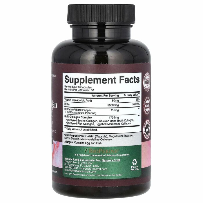 Воспользуйтесь преимуществами биотина и коллагена травяного происхождения для роста волос, красивой кожи и крепких ногтей с коллагеном полного спектра и экстрактом черного перца, улучшающим усвоение.