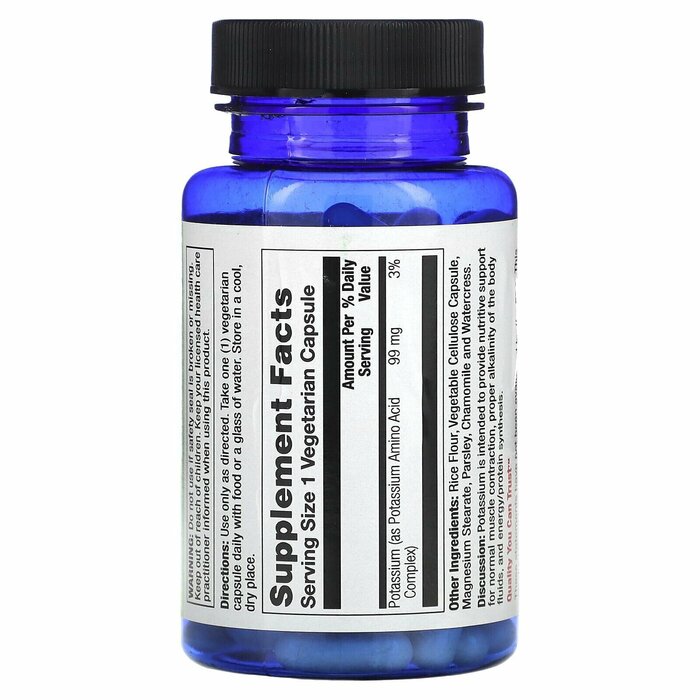 Описание. Калий обеспечивает питательную поддержку для нормального сокращения мышц, надлежащей щелочности жидкостей организма и синтеза энергии / белка.
