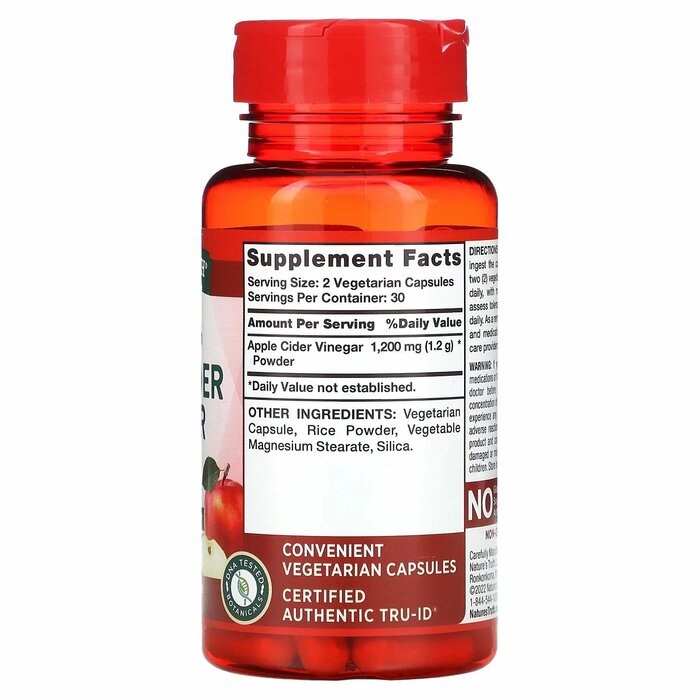 Каждая ежедневная порция этих капсул быстрого действия содержит 1200 мг порошка яблочного уксуса. Эти удобные для приема капсулы не имеют резкого уксусного послевкусия и обеспечивают тройную поддержку силы с традиционными полезными свойствами яблочного уксуса.